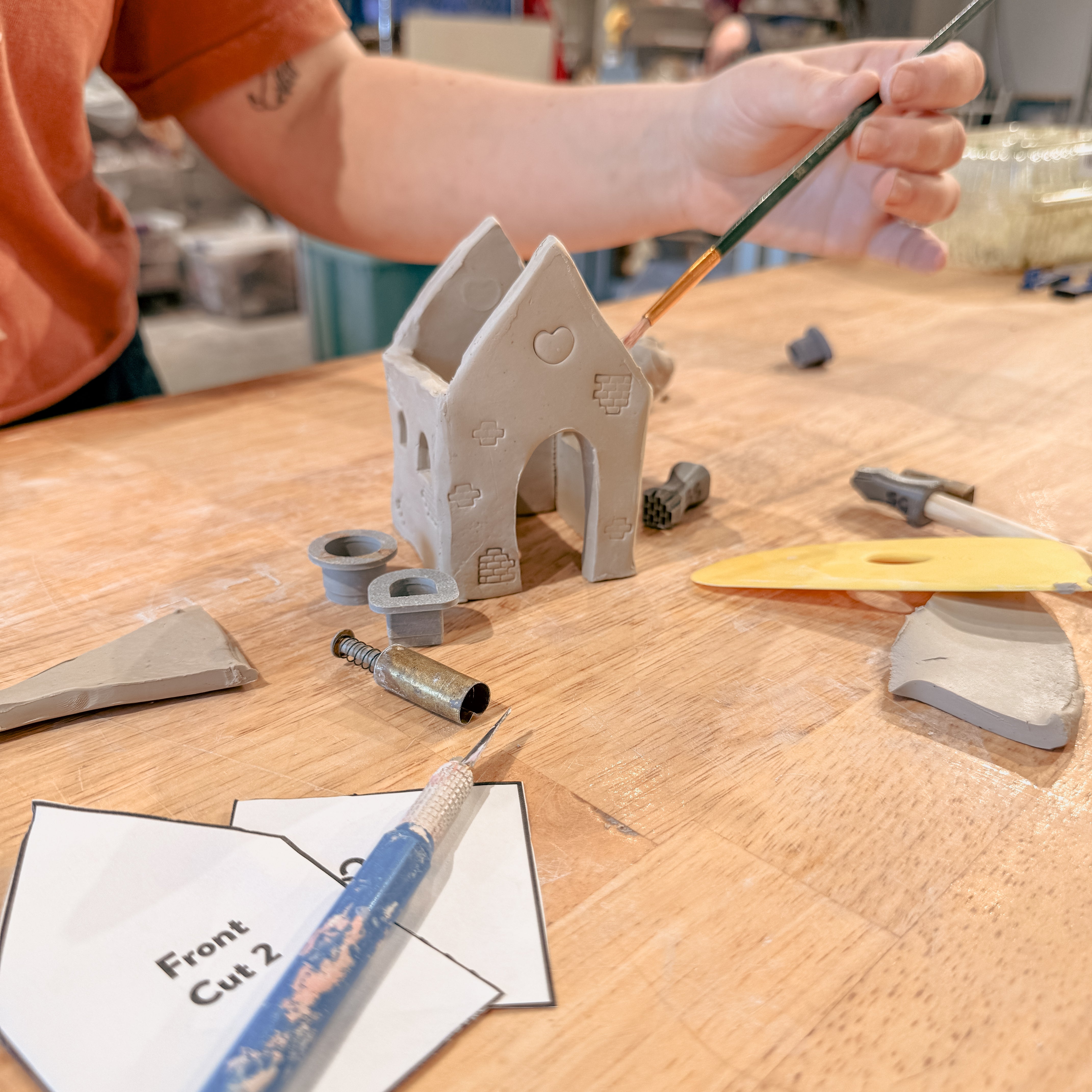 In this hand-building pottery workshop, you'll create a charming miniature house that glows beautifully when lit with a tea light candle. Decorate your votive with romantic Valentine's motifs including hearts, love messages, floral patterns, and more using specialty stamps and carving techniques.
